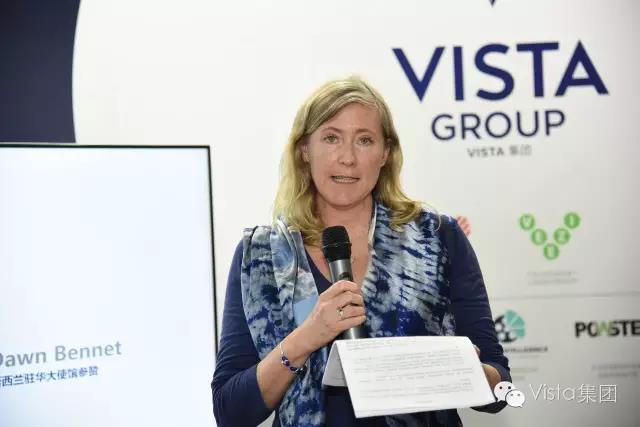 Dawn Bennet女士用流利的中文发表了致辞,她在致辞中说道:在新西兰的创意行业中,逐渐有许多不同类型的新型创新公司进入中国,Vista就是例证之一。近年,中国电影市场展现出快速增长的态势,在2016年里,平均每天增加22家影院,目前中国共有超过3万块屏幕和7400家影院,这对于新中影视行业合作来说,可能正是最好的时光。