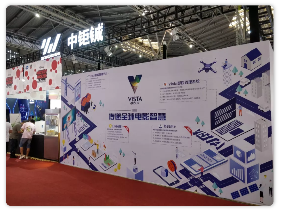 今年,VISTA 首次与中钜铖联合出展,为观众带来了影院管理系统、卖品、无人售货、电影 IP 相结合的全景式影院生态体验。