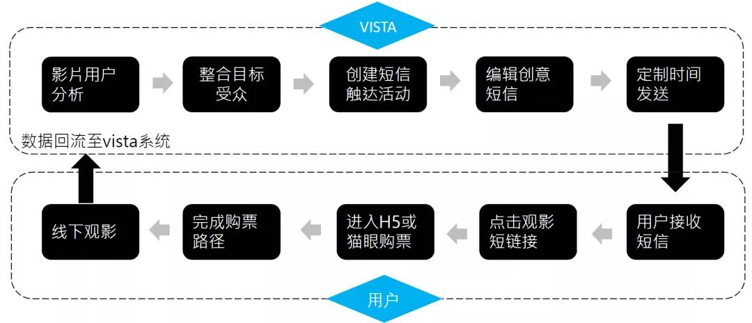 「自有渠道」方面,Vista 影院管理系统自身拥有强大的营销平台,选取对标影片并进行系统计算,选择恰当的时间,对 4 万名以上购票用户发送精准营销信息,直接促进用户购票观影。